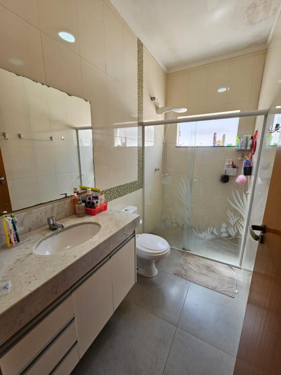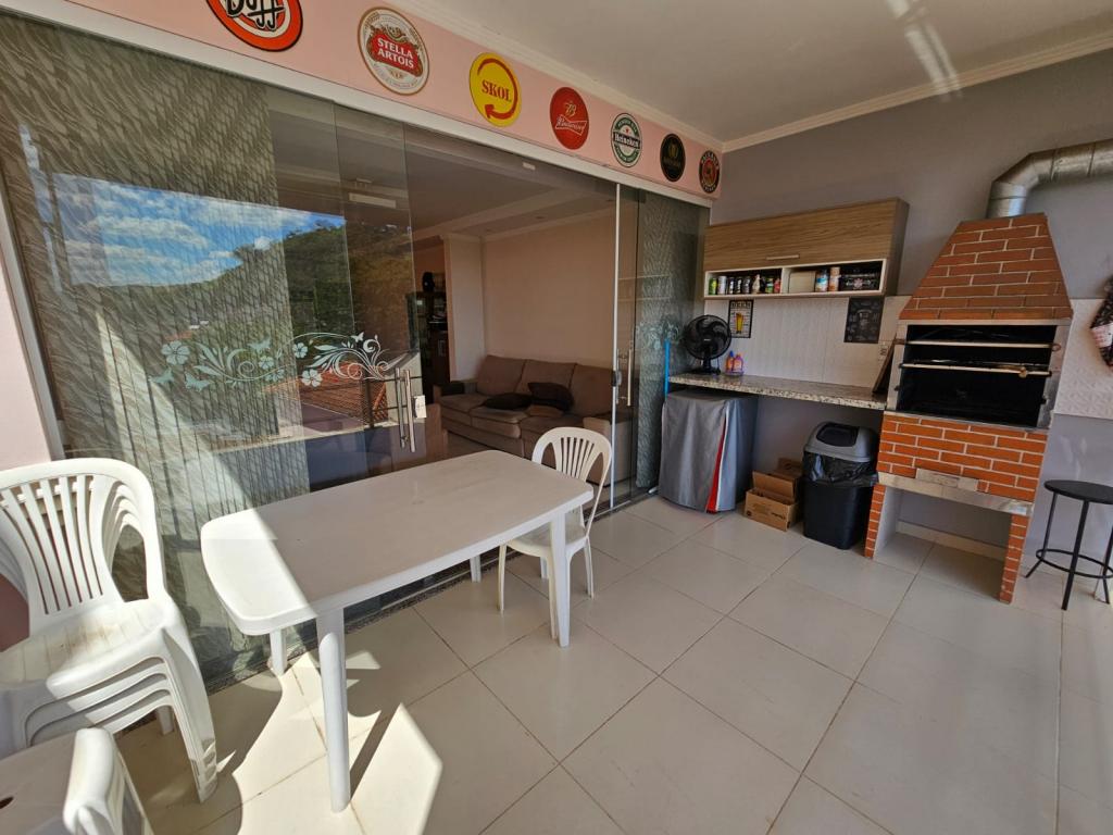 PISO SUPERIOR: - Garagem coberta p/ 02 carros - Portão eletrônico com Interfone e Câmeras - 03 quartos (todos com ventilador de teto), sendo 01 suíte, - Banheiro Social PISO INFERIOR - Cozinha Americana com Cooktop, Coifa e Balcão e Armários Planejados - Sala Com Acabamento em Gesso - Lavabo - Varanda Gourmet com Churrasqueira (vista maravilhosa) ÁREA EXTERNA - Área de Serviço - Quintal gramado com Jardim